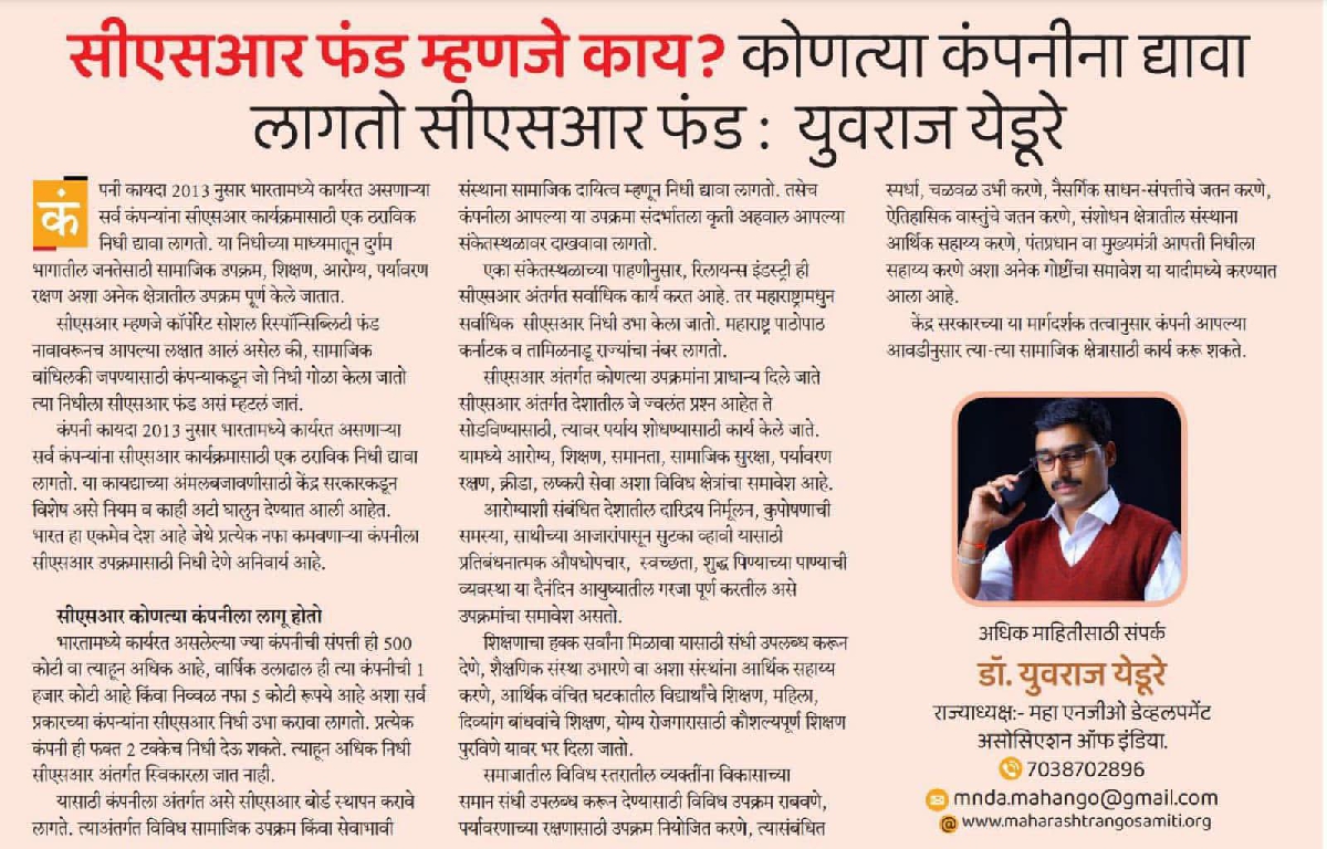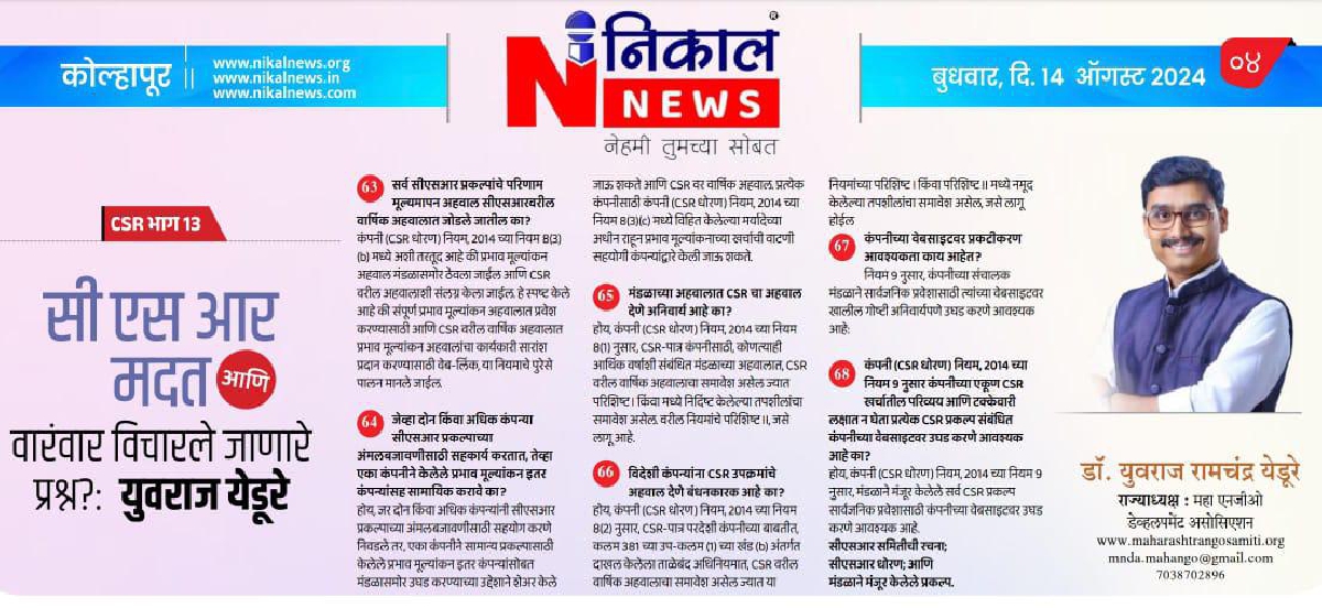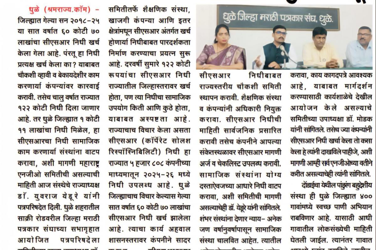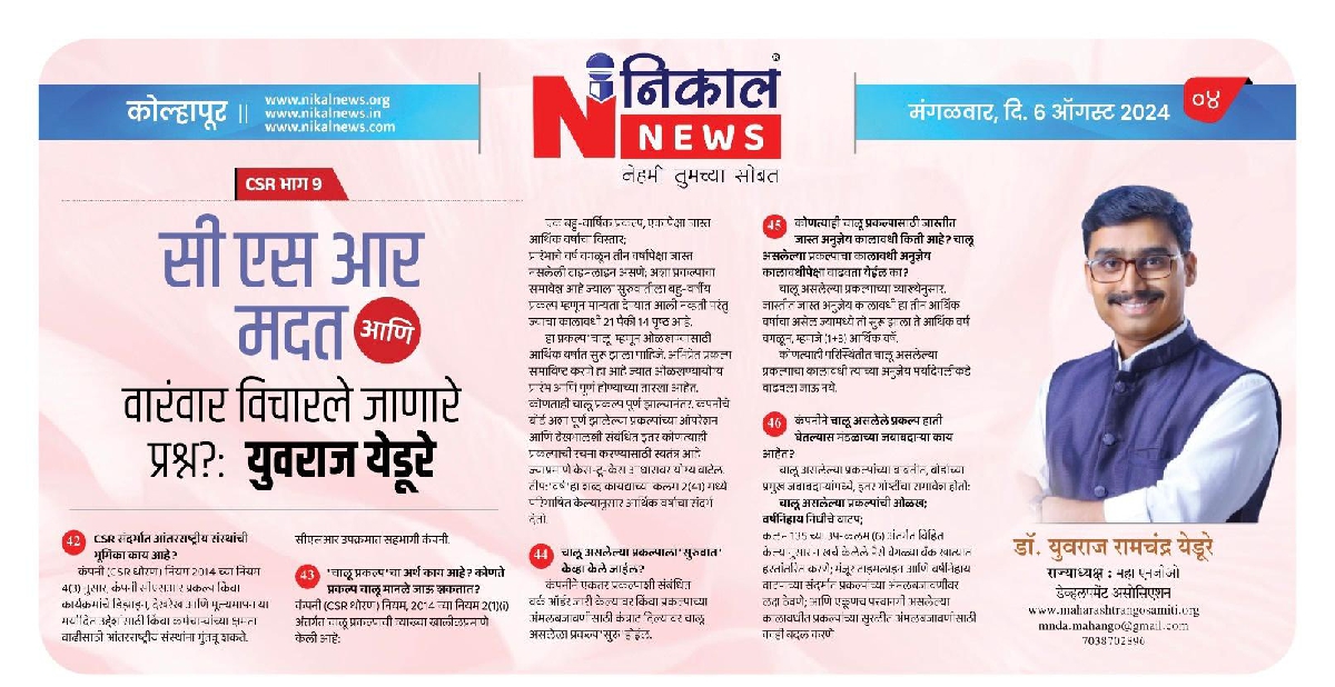 Hindavi - Swarajya Bhavan, 1st Floor, Bidri - Mudal Titta Main Road, Borwade Tal:- Kagal Dist:- Kolhapur 416208 (INDIA)